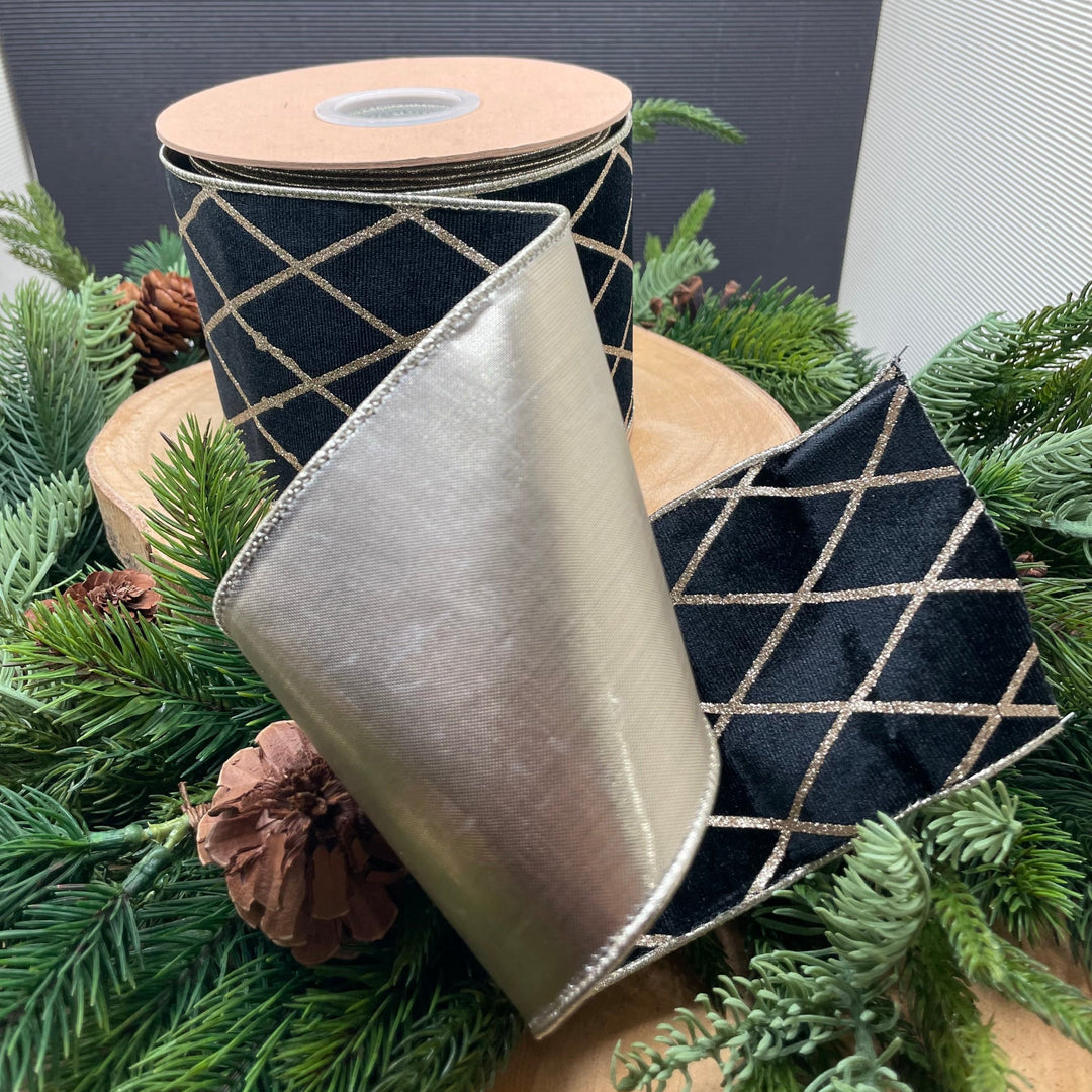 4" x 10 YDS Green with Gold Trim Velvet Ribbon