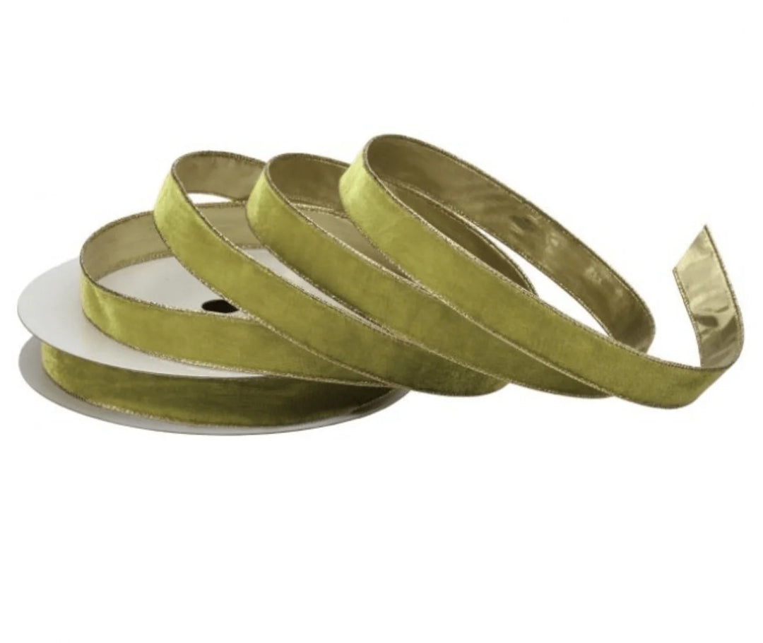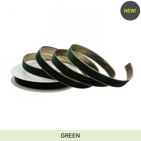 1"x20Y Wired Velvet Ribbon with Metallic Edge Green