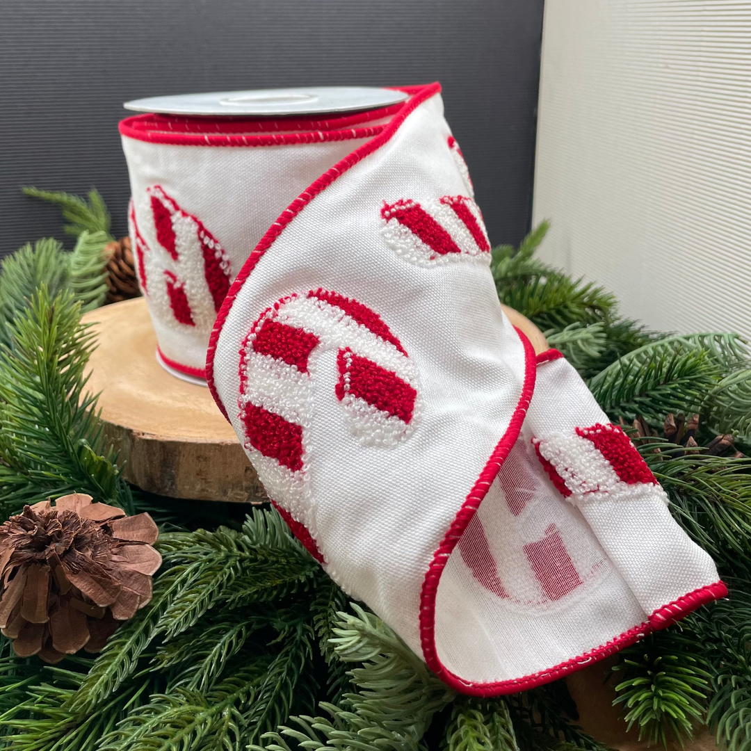 2.5" x 10 YDS Satin Glitter Red White Peppermint Candy Ribbon