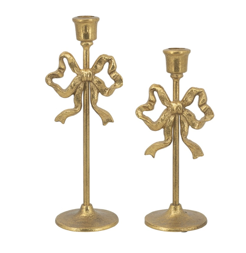 Gold Bow Candlestick Set