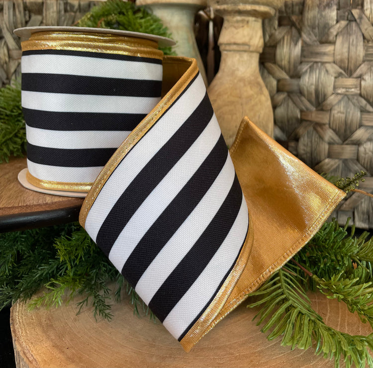 4" x 5 YDS Cotton w/Lame Stripe Ribbon
